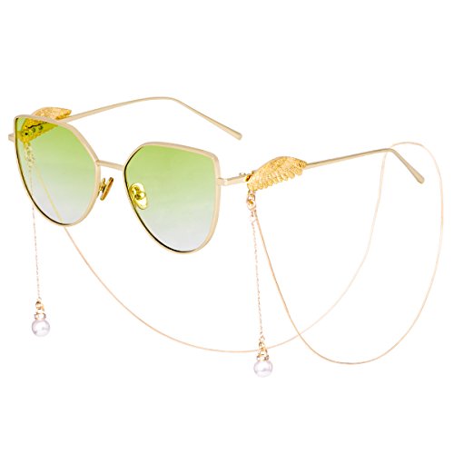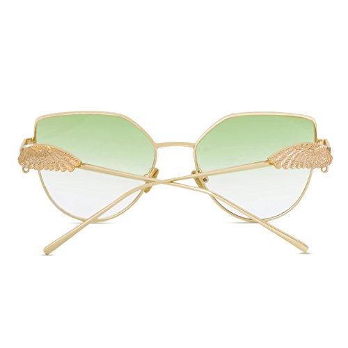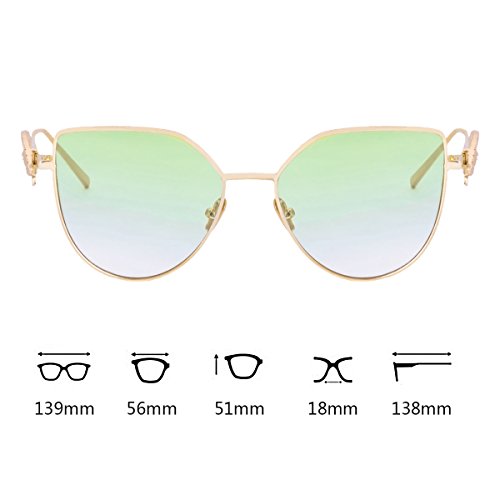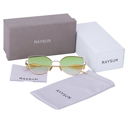 RAYSUN Women Cat Eye Gradient Sunglasses Transparent Metal Frame Flat Lenses UV 400 Stylish Fashion Trendy Glasses (Green)