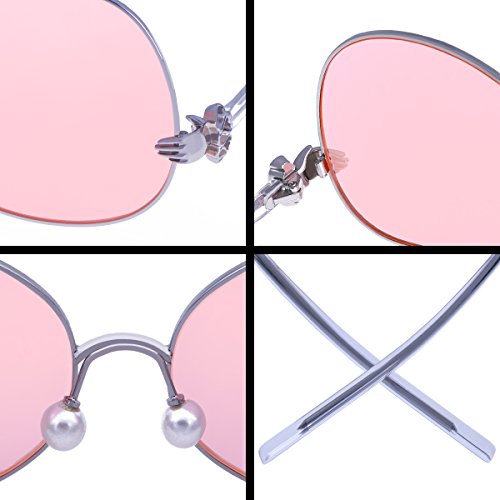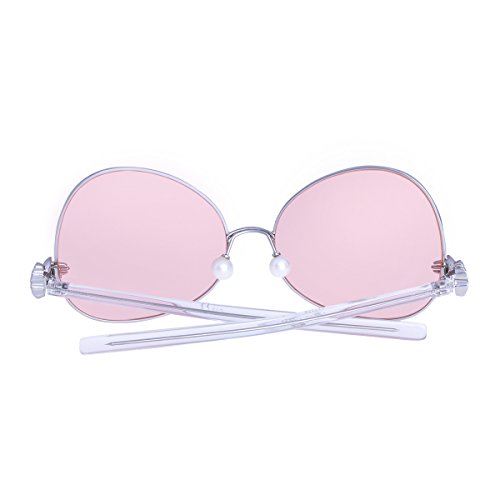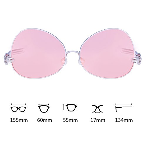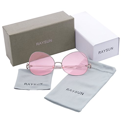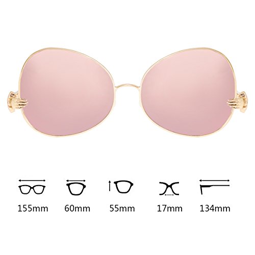 RAYSUN Women Oval Sunglasses Mirrored Eyewear Metal Frame Aviator Oversized UV 400 Lens Fashion Plastic Glasses (Pink)