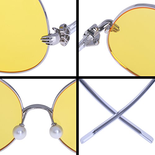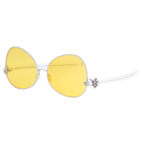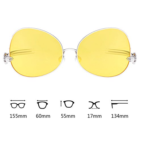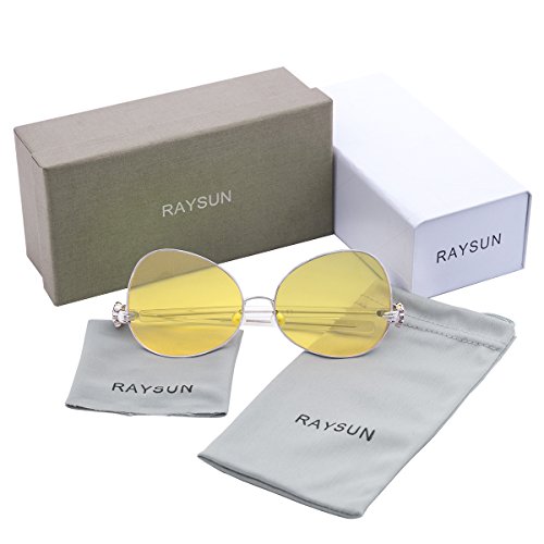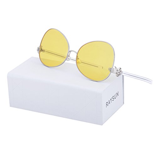 RAYSUN Women Oval Sunglasses Mirrored Eyewear Metal Frame Aviator Oversized UV 400 lens fashion plastic glasses (Yellow)