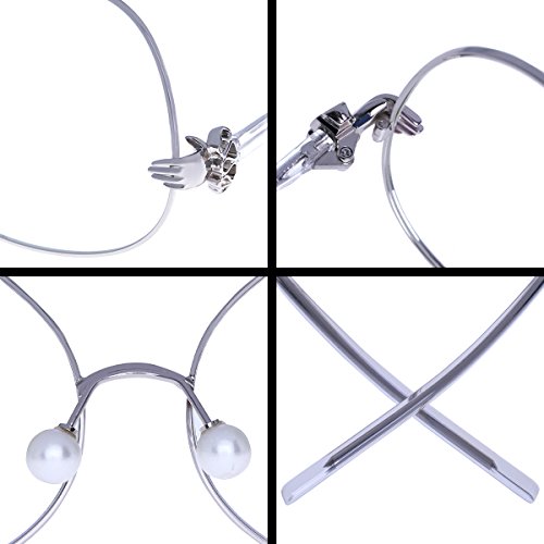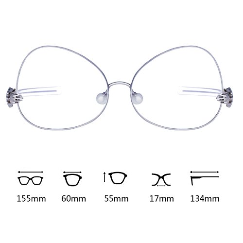 RAYSUN Women Cat Eye Transparent Sunglasses Rimless Metal Frame Flat Frameless Fashion Trendy Cute Youth Glasses (Silver)