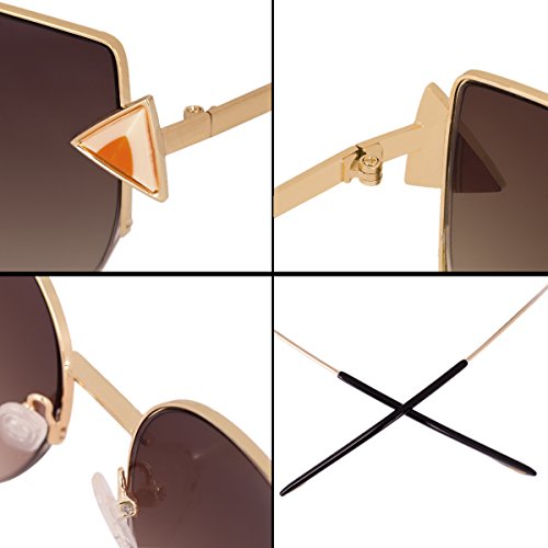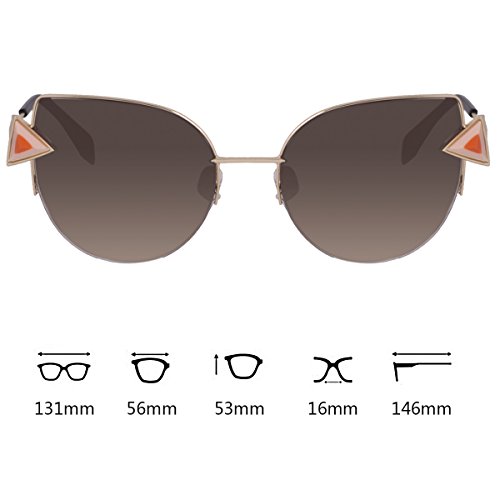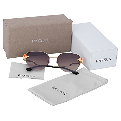 RAYSUN Women Cat Eye Mirrored Lenses Sunglasses Fashion Gradient Metal Frame UV 400 Lightweight Fashion Glasses (Coffee)