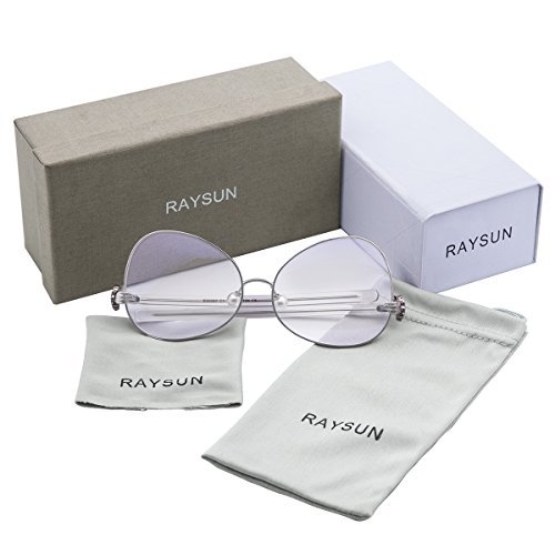 RAYSUN Women Cat Eye Transparent Sunglasses Rimless Metal Frame Flat Frameless Fashion Trendy Cute Youth Glasses (Grey)