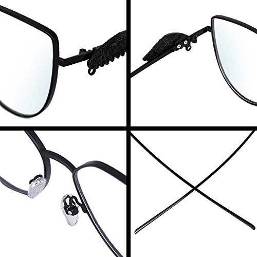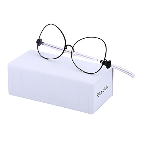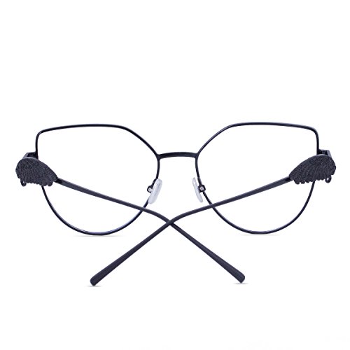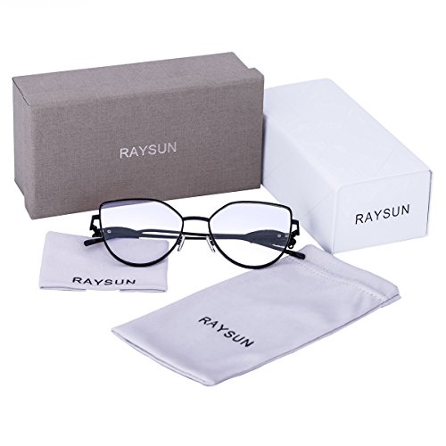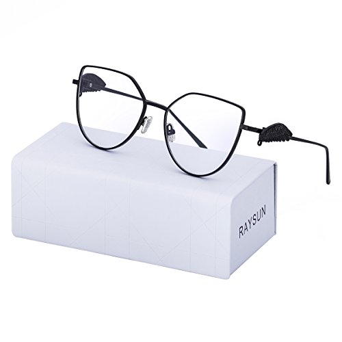 RAYSUN Women Cat Eye Gradient Sunglasses Transparent Metal Frame Flat Lenses UV 400 Stylish Fashion Trendy Glasses (Black)