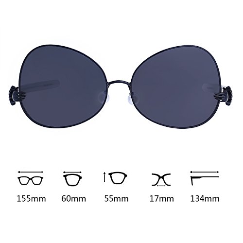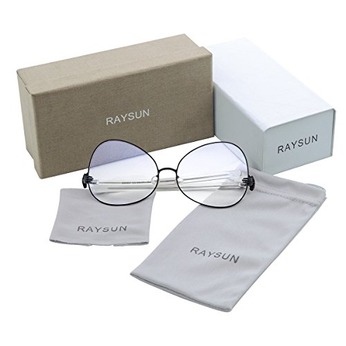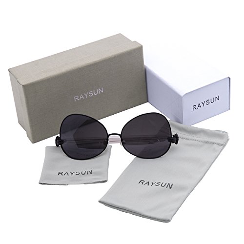 RAYSUN Women Oval Sunglasses Mirrored Eyewear Metal Frame Aviator Oversized UV 400 Lens Fashion Plastic Glasses (Black)