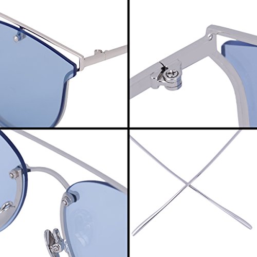 RAYSUN Women Cat Eye Transparent Sunglasses Rimless Metal Frame Flat frameless Fashion Trendy Cute Youth Glasses (Blue)