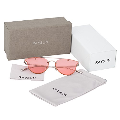 RAYSUN Cat Eye Women Sunglasses Polarized Mirrored Fashion Flat Lenses Metal Glasses (Pink)