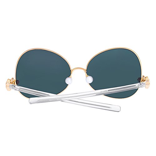RAYSUN Women Oval Sunglasses Mirrored Eyewear Metal Frame Aviator Oversized UV 400 Lens Fashion Plastic Glasses (Gold)