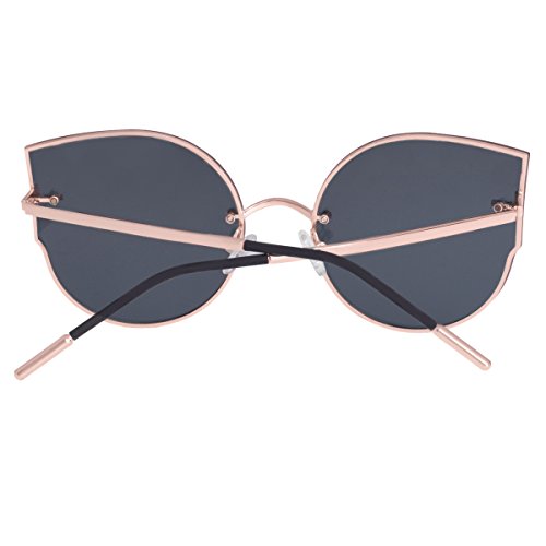RAYSUN Women Cat Eye Mirrored Flat Lenses Sunglasses Rimless Trendy Frameless Fashion Metal Frame Cute Glasses (Rose gold)