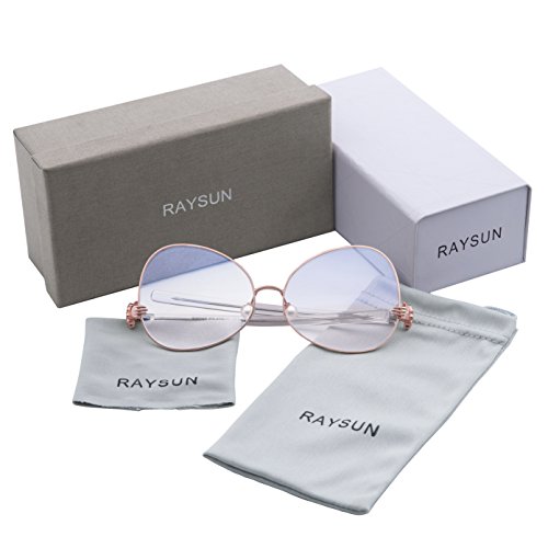 RAYSUN Women Cat Eye Gradient Sunglasses Transparent Metal Frame Flat Lenses UV 400 Stylish Fashion Trendy Glasses (Blue)