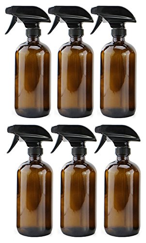 16oz Amber Glass Spray Bottles (6 Pack), Boston Round Bottles W/ Heavy Duty Mist and Stream Sprayers