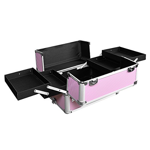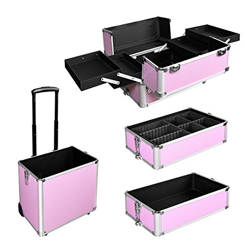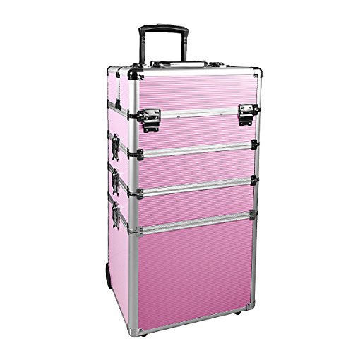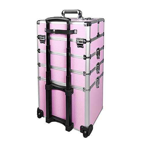 Makeup Rolling Train Case 4-in-1 Professional Artist Trolley Cosmetic Organizer with 2 Wheels Durable Aluminum Frame Folding Trays and Locks...