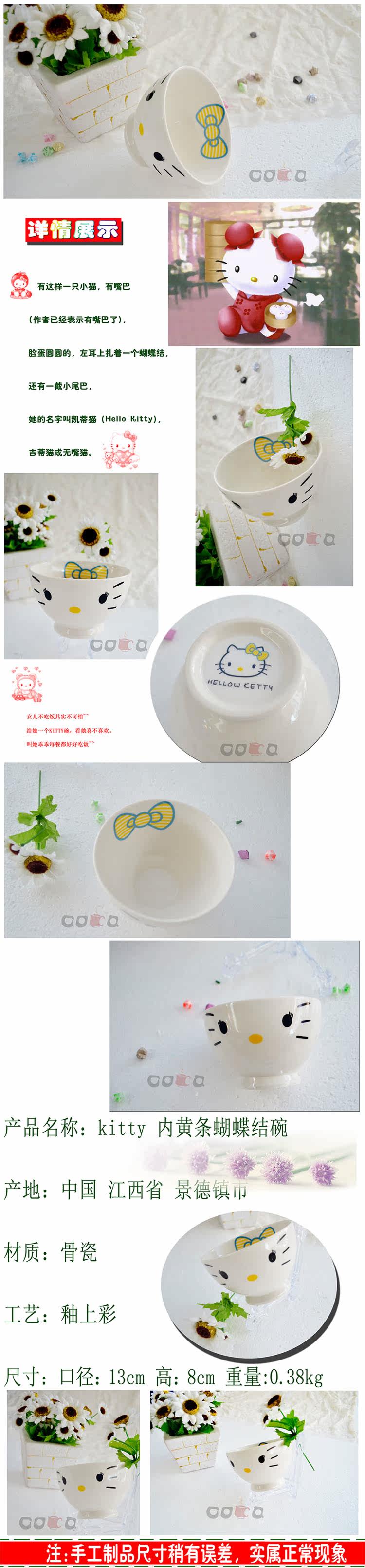 景德镇陶瓷Hello Kitty 陶瓷 米饭碗创意碗可爱的碗黄线条高脚碗