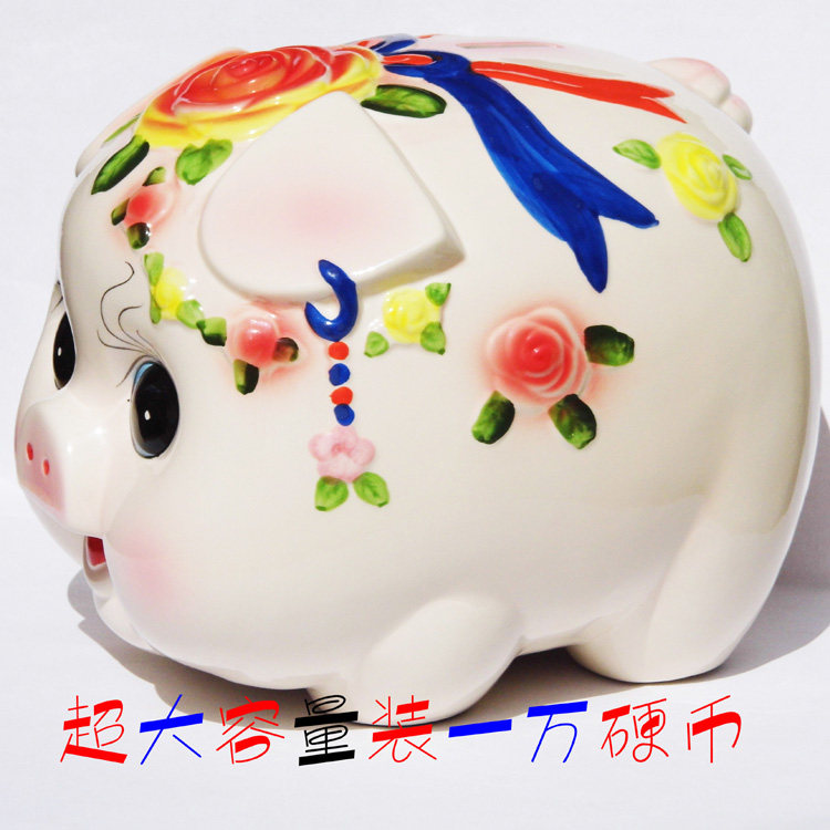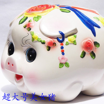 超大号玫瑰花美女猪: 长29cm *宽24cm*高22cm 大约可以装1万元左右, 装多少只是大约的哦,具体以实际尺寸为准