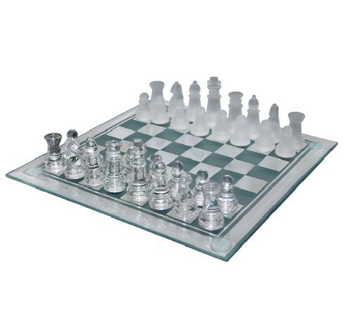 The 32 chessmen are either clear or frosted, with felt bottoms for easy maneuvering on the board