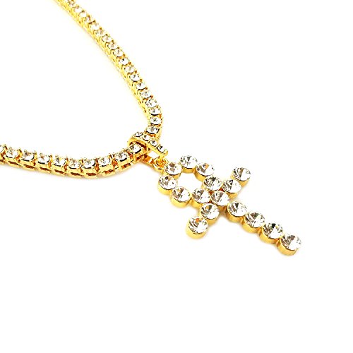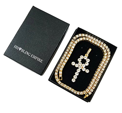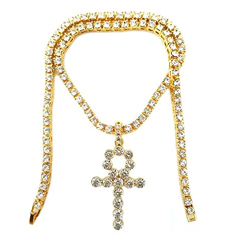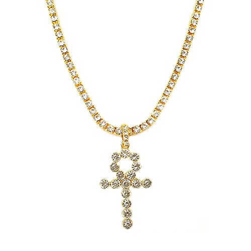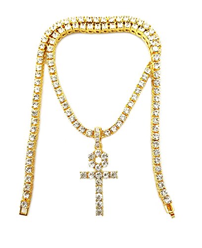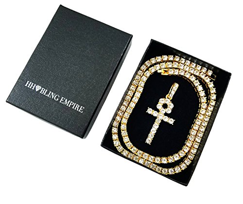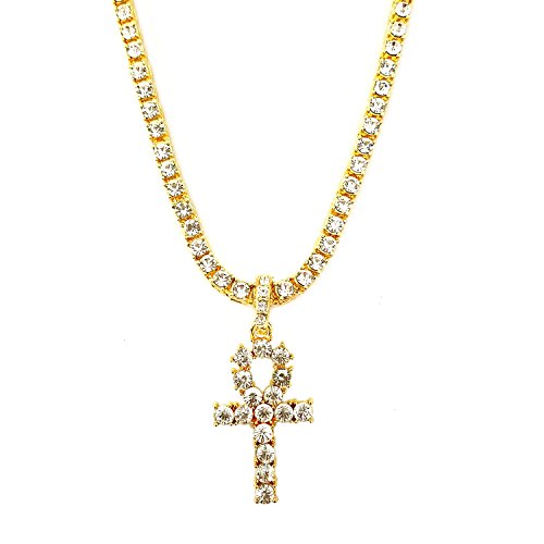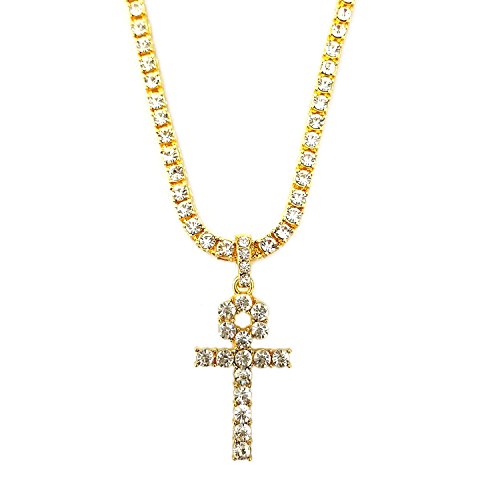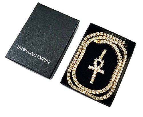 -. Title : HH Bling Empire Mens Iced Out Hip Hop Gold Artificial Diamond Ankh Cross cz Tennis Chain 22 Inch