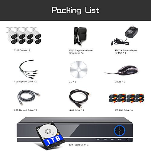 -. Binding : Electronics -. Brand : IHOMEGUARD -. Color : Red -. EAN : 0688215110310 -. Feature : AHD Cameras Offer 1500TVL Great Qaulity Video&Image. More Clear Daytime and Night Vision. / Alarm Push Function on APP,View Camera Freely. See Live Video Using Your Computer,Tablet,or Mobile Phone from Anytime Anywhere / Motion Detection Recording Allows You Save More Hard Drive Space. 1TB Hard Drive is Installed. / Outdoor Weatherproof Metal Housing Camera with Elegant White Color.1080P HDMI Output Allows You View on HD 1080P Monitor. / FCC Certified with UL Compliant Power Adapter, 3 Years Warranty and Life Time Tech Support! -. Label : IHOMEGUARD -. Manufacturer : IHOMEGUARD -. MPN : IHG-720P-88-1TB -. PackageQuantity : 1 -. PartNumber : IHG-720P-88-1TB -. ProductGroup : Photography -. ProductTypeName : SURVEILANCE_SYSTEMS -. Publisher : IHOMEGUARD -. Studio : IHOMEGUARD -. Title : IHOMEGUARD 8 Channel Security System 1080N AHD DVR Surveillance Security System 8 HD 720P 1500TVLNight Vision Security Cameras with 1TB Hard Drive -. UPC : 688215110310