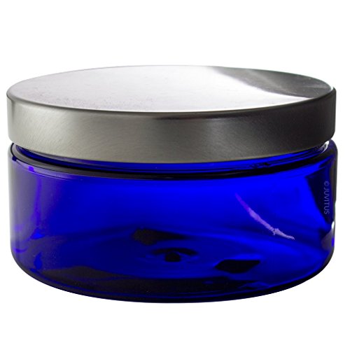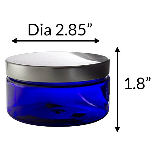 Cobalt Blue 8 oz PET Plastic (BPA Free) Refillable Low Profile Jar with Silver Metal Lid - 6 Pack