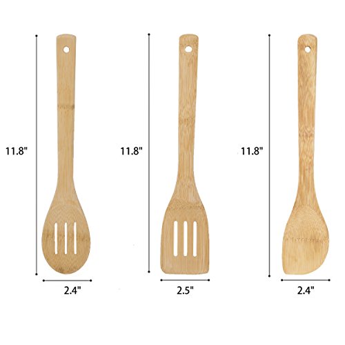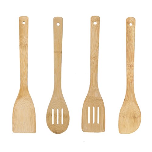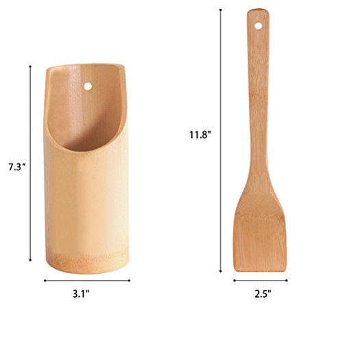 HBlife 5 Pcs Bamboo wok Cooking Utensils Set Holder Kitchen Tool with Storage Organizer