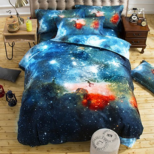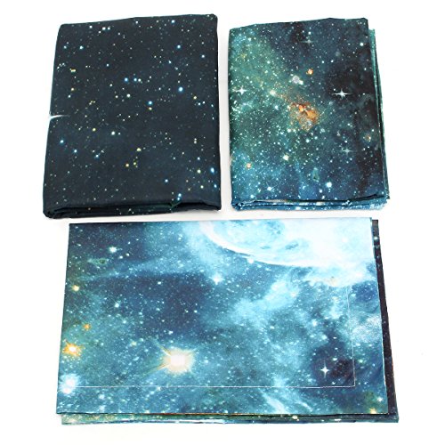 KCASA 3 in 1 Universe Galaxy Star Theme Pattern Single Bedding Set - 1 Piece Duvet Cover , 1 Piece Bed Sheet & 1 Pillow