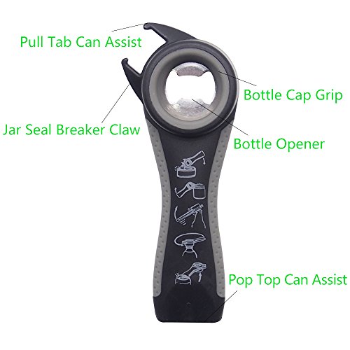 Jar Beer Bottle Opener for Seniors with Arthritis 5 in 1 Multi Opener for Weak Arthritic Hands, Kitchen Tools and Gadgets