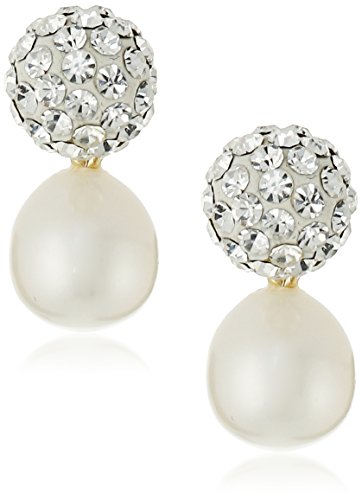 Crystal-encrusted post earring featuring freshwater cultured pearl drop and friction-back findings