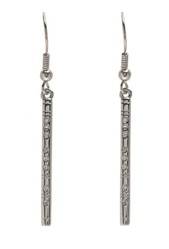 - Title : Silver Flute Earrings with Crystal Accents