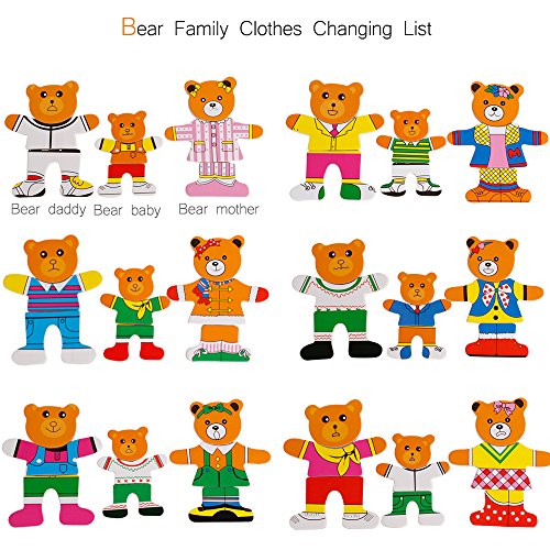 -. Title : Wooden Jigsaw Puzzle Bear Family Dress up Toys for Preschool Toddlers Kids Education 54 Pieces