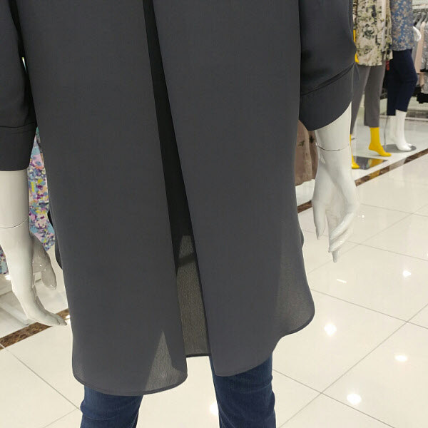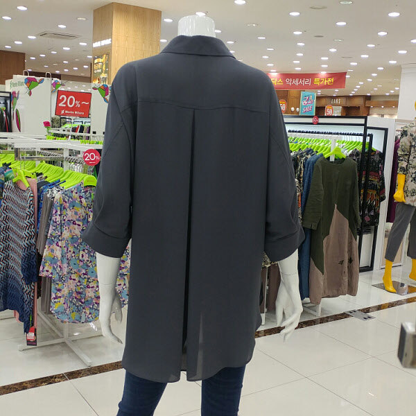 기본카라에 박시하게 흘러내리는듯한 자연스러움과 뒷라인에 맞주름이 멋스럽다