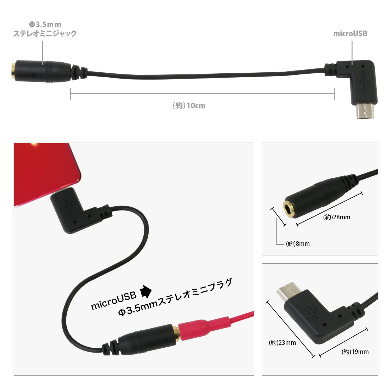 It is an adapter which converts from microUSB to stereo earphone of Φ 3.5 mm stereo mini plug.