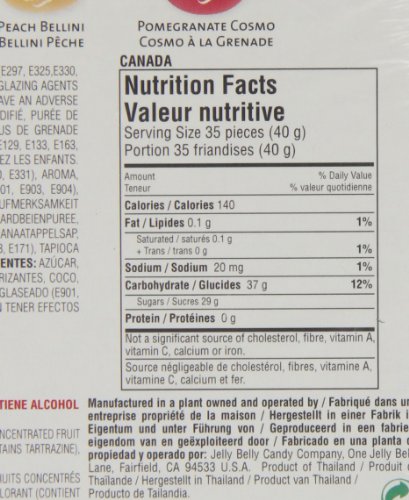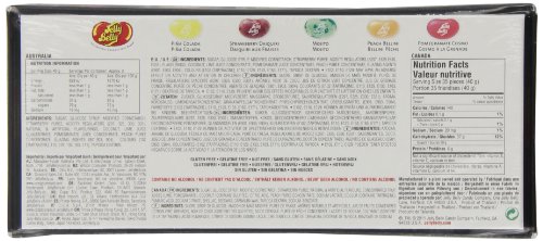 -. Binding : Health and Beauty -. Brand : Jelly Belly -. Feature : 4.25 oz net weight / Direct from the Jelly Belly factory / Zero fat and only 4 calories per bean / Five true-to-life cocktail flavors / No alcohol content -. Label : Jelly Belly Candy Company -. Manufacturer : Jelly Belly Candy Company -. MPN : 96762 -. PartNumber : 96762 -. ProductGroup : Health and Beauty -. ProductTypeName : HEALTH_PERSONAL_CARE -. Publisher : Jelly Belly Candy Company -. Studio : Jelly Belly Candy Company -. Title : Jelly Belly Cocktail Classics 5-Flavor Gift Box NET WT 4.25 OZ (120g)