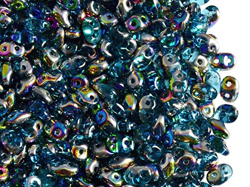 10gr Czech Two Hole Seed Beads SuperDuo 2,5x5 mm AQUAMARINE VITRAIL