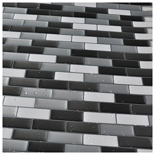 Art3d Peel and Stick Wall Tile for Kitchen / Bathroom Backsplash, 12"x12", Grey-White (6 Pack)