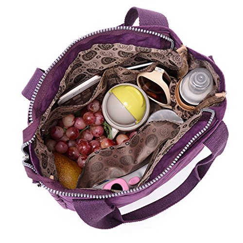 Multiple pockets design,one main zipper compartment can hold ipad,wallet,cell phone,baby bottle,purse,umbrella,credit cards,cosmetics and so on;two front pockets and one back pouch.More convenient and more easy to organsier your stuffs