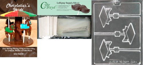 Cybrtrayd Graduation Cap Lolly Chocolate Mold with Lollipop Supply Bundle, Includes 25 Lollipop Sticks, 25 Cello Bags and 25 Silver Twist Ties