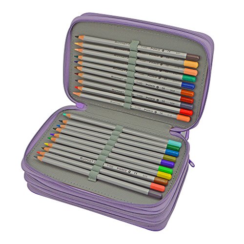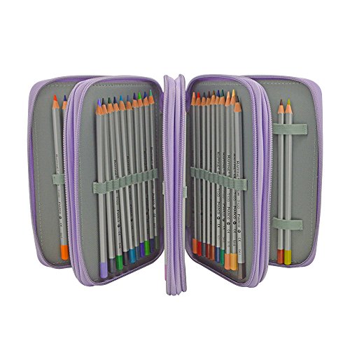 Pencil Case Professional 4 Layers and 4 Zippers,Anti-drop and Anti-shock Sketch 72 Slots Fill-color Pencil Case with Lots of Compartments Colors Pen Bag for Painting (purple)