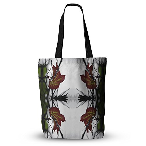 KESS InHouse Pia Schneider "Leaves" Red Green Everything Tote Bag, 18" x 18", Multicolor