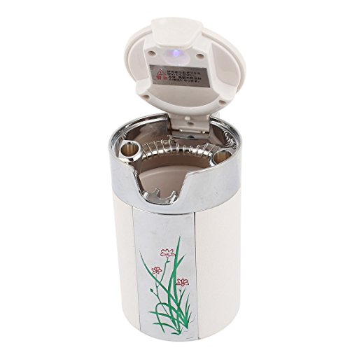 Blue LED Light Smokeless Solar Ashtray Cigarette Holder White for Car