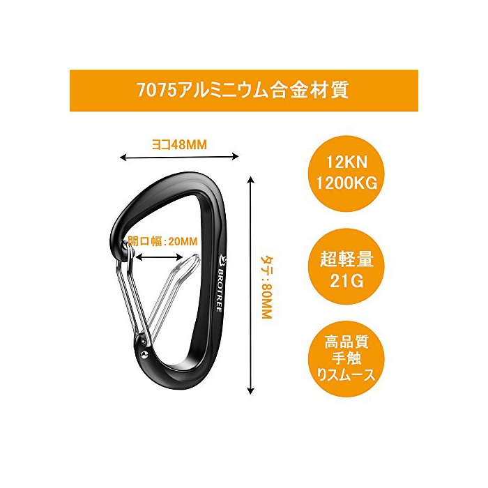 원본상품명: Brotree ロックカラビナ 12KN(1200kg) 登山 スリング Dリングキホルダ クライミング アルミオトロック ロッキンカラビナ 超量21g ハンモック キャンプ用 セルフロック