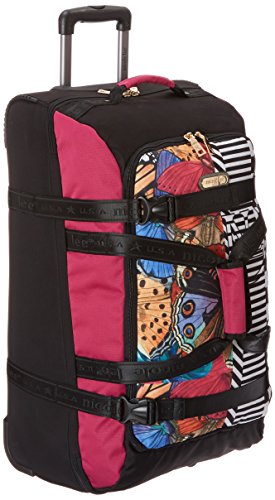 Studio : Nicole Lee Parent Code (Luggage) Publisher : Nicole Lee Parent Code (Luggage) Binding : Apparel Product Description Need a vacation? Pack your belonging in the Nicole Lee Dana 26.5 Inch Rolling Duffel Bag. Key Features: spacious main zipper compartment, convenient top handles, U-shaped front pocket. Exterior features: Nicole Lee print surrounding, retractable push lock pull handle that extends up to 41 inches from floor, two way zipper closures, dual adjustable buckle snap strap, 2 inline skate wheels, 2 stabilizing feet, side and top carry handles, at back sliding glide for extra protection, front zipper pocket and Nicole Lee nameplate at the front. Interior features: fully lined with NL logo stamp, 2 adjustable ties down straps to keep clothes in place and neat during transit, small and mesh zipper pocket. Retractable handle extends up to 16 inches from the body. Dual top handle drop is 8 inches. Available colors are Butterfly and NL Stripe. For cleaning, wipe with damp cloth. 0