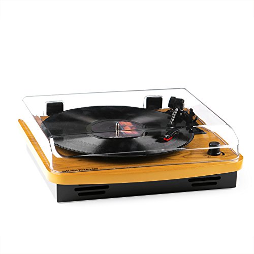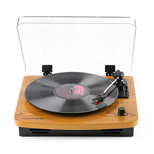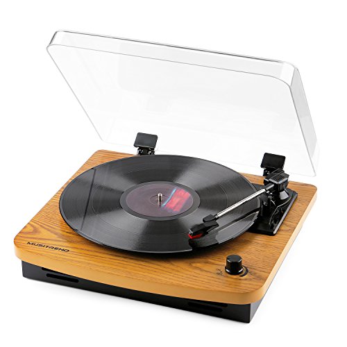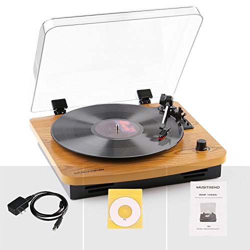 Musitrend LP 3-Speed Turntable with Built-in Stereo Speakers, Vintage Style Record Player Support Vinyl-To-MP3 Recording, RCA Output, Natural Wood
