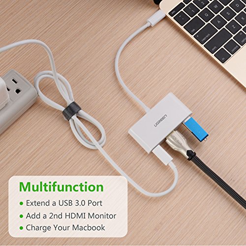 UGREEN USB-C to HDMI Adapter, USB Type-C HDMI Multi Adapter with USB C PD Charging Port and USB 3.0 for Macbook, Dell XPS 13(2016), Lenovo Yoga 910, Macbook Pro 2016, Google Chromebook Pixel