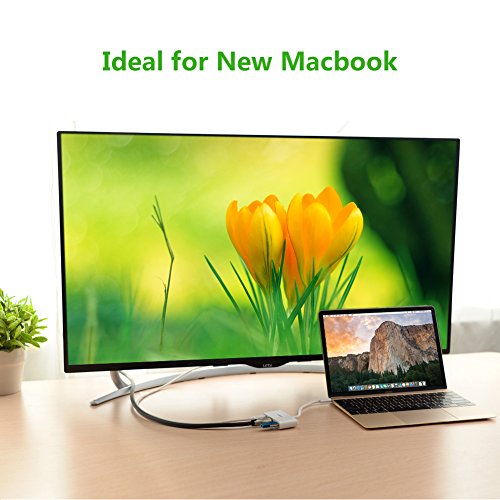 Type C to HDMI/USB 3.0/USB C Multiport: USB C digital AV adapter can easily connect a USB-C enabled laptop to an HDMI display or projector while providing a USB-C charging port and USB 3.0 data port for USB Type-C device such as MacBook 2015/2016, Dell XPS 13(2016), Lenovo Yoga 900, 2016 MacBook Pro, Chromebook Pixel, etc.