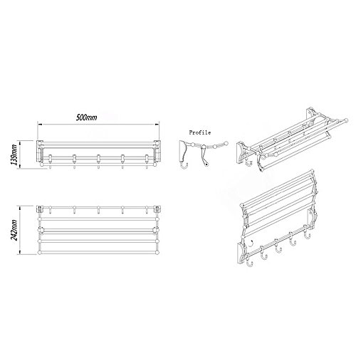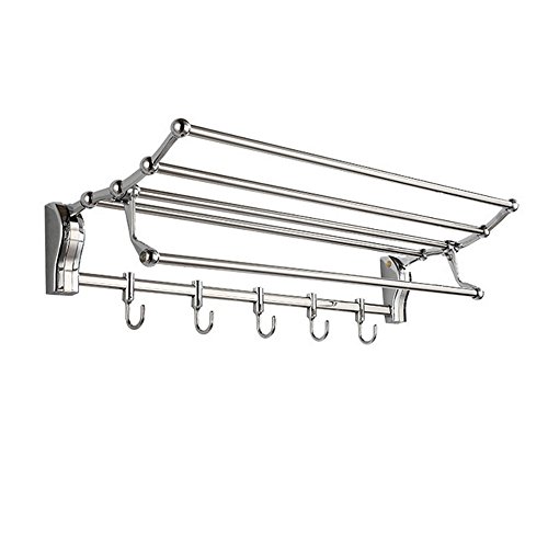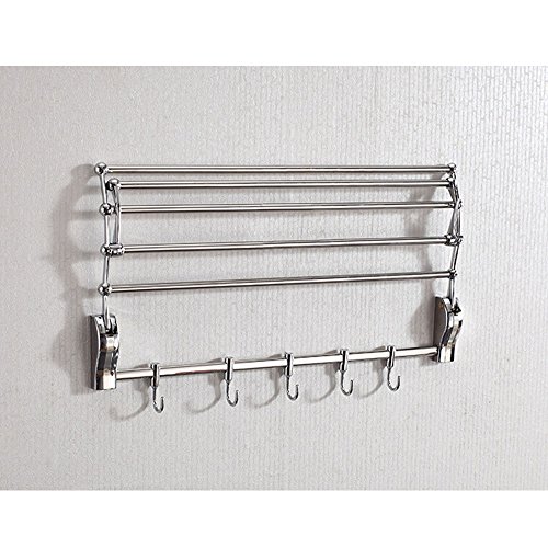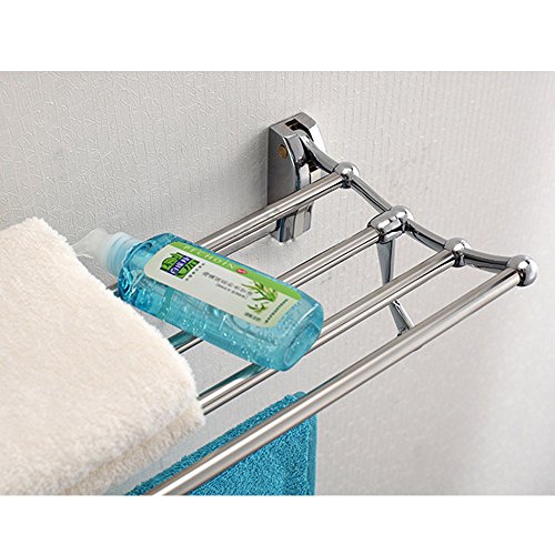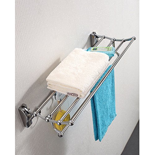 Bathroom Minimalist Towel Rack Shelf with Foldable Towel Bars Wall Mounted, Polished SUS304 Stainless Steel