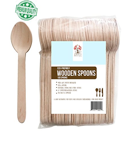 Wooden Disposable Spoons, 6" Utensils Eco-Friendly cutlery Biodegradable Compostable Spoons party supplies (Pack of 100) GO GREEN!