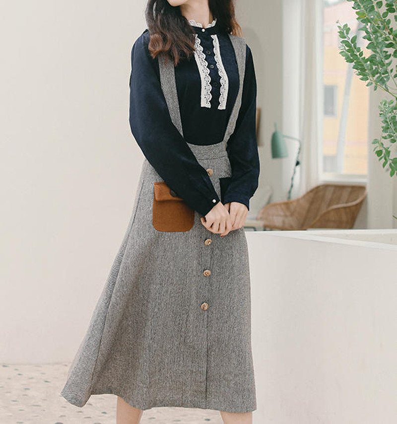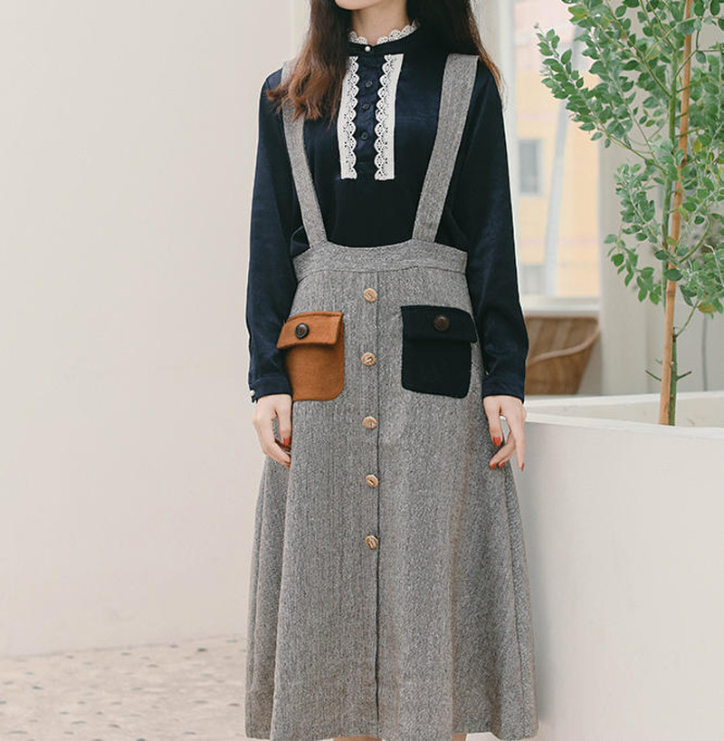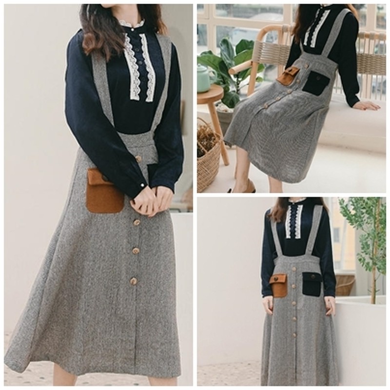 ♢素材♢ ポケットのバイカラーがおしゃれなジャンパースカートです。 通勤や御呼ばれなどにもオススメです♪