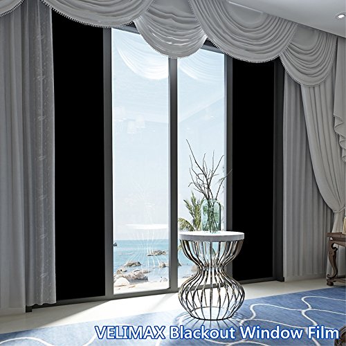 Velimax Self Adhesive Privacy Tint Black Stickers Decorative Window Film Blackout 17.7 x 78.7 inches(45CM by 200CM)