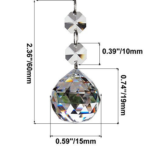 - Each crystal ball measures 0.59"/15mm, round-shaped like diamond, and includes two 0.39"/10mm top jewel octagon beads, and has a total hang of appx 2.36"/60mm, connected with stainless jump rings