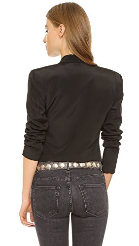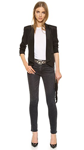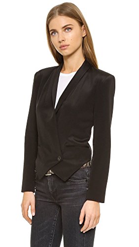 Rebecca Minkoff's signature Becky blazer, cut from cool silk and detailed with slim lapels. Welt pockets sit at the front and buttons fasten along the asymmetrical hem. Elbow darts and light shoulder padding structure the long sleeves. Lined.