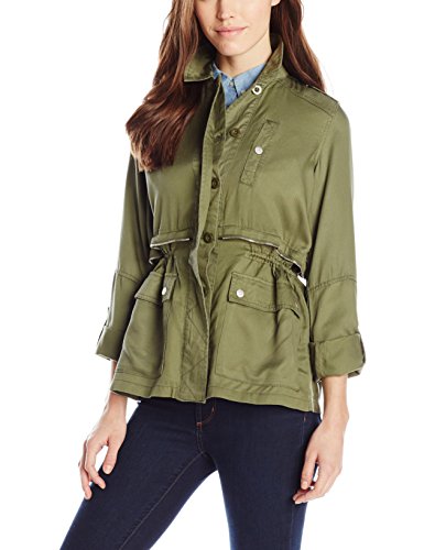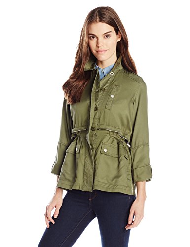 Button-front military jacket featuring inner drawcord and zipper-trimmed popover at waist Epaulettes Long roll-tab sleeves Snap-flap utility pockets Brand : Jessica Simpson Item model num : 49007255-664 EAN : 0822980226504 Product Dimensions(LxWxH) :