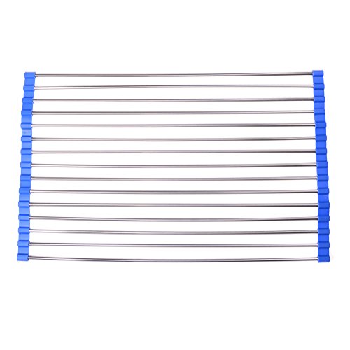 -. Title : 1 Pc Stainless Steel Foldable Roll-up Over Sink Dish Drying Rack for Fruits Vegetables Washing Blue